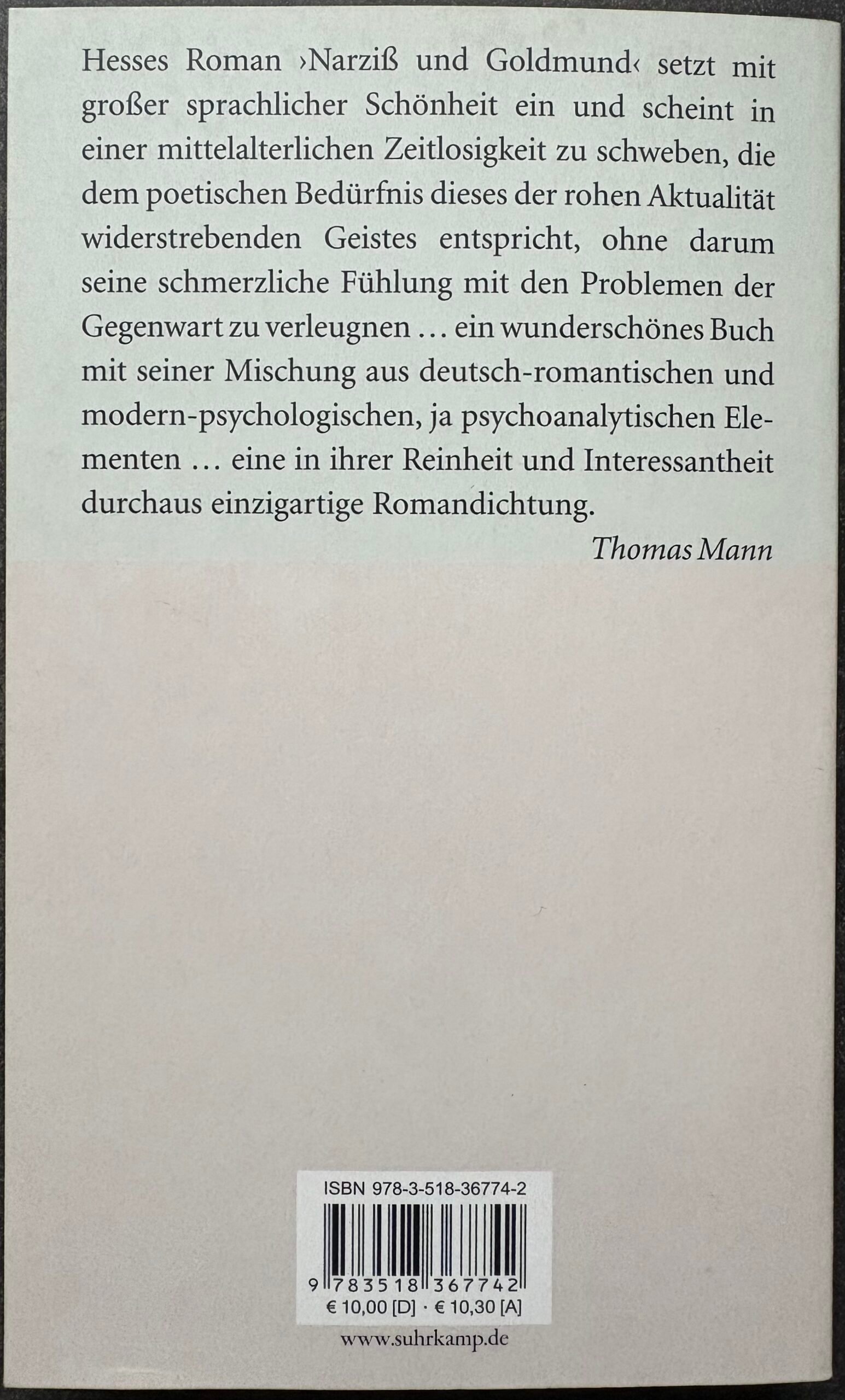 Narziss und Goldmund ist ein bedeutender Roman von Hermann Hesse, der die unterschiedlichen Lebenswege zweier Freunde im Mittelalter beschreibt. Narziss ist klug, diszipliniert und strebt nach geistiger Erkenntnis, während Goldmund das Leben voller Sinnlichkeit, Kunst und Freiheit genießt. Der Roman behandelt Themen wie Freundschaft, Selbstfindung, Lebensphilosophie und den Konflikt zwischen Geist und Gefühl.