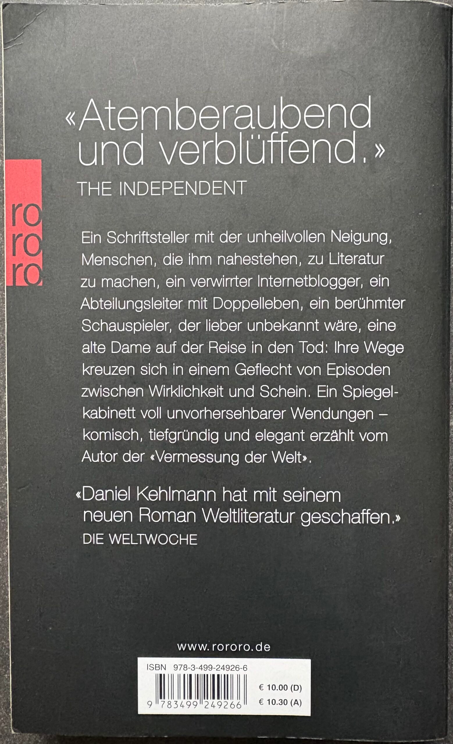 Ruhm ist ein moderner Roman von Daniel Kehlmann, der auf clevere und oft ironische Weise das Thema Berühmtheit, Identität und die Auswirkungen moderner Kommunikation untersucht. Der Roman besteht aus miteinander verflochtenen Kurzgeschichten, in denen die Figuren auf unterschiedliche Weise mit Bekanntheit, Anerkennung oder digitalen Medien umgehen.