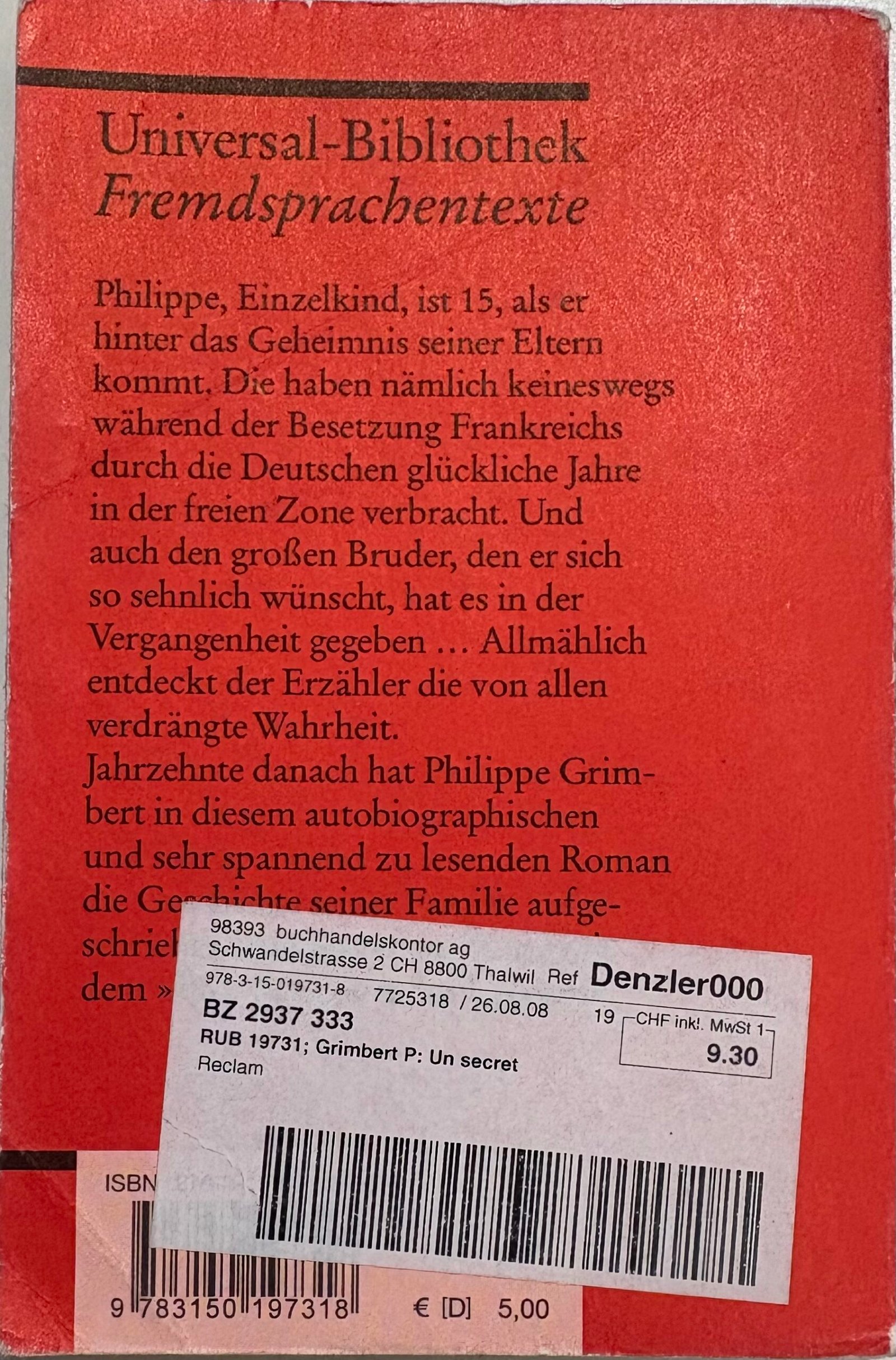 Produktdetails: Autor: Philippe Grimbert, Genre: Roman / Zeitgeschichte / Familiengeschichte, Themen: Familie, Identität, Schuld, Holocaust, Verdrängung, Geeignet für: Schule (Sek II), Jugendliche, Literaturinteressierte